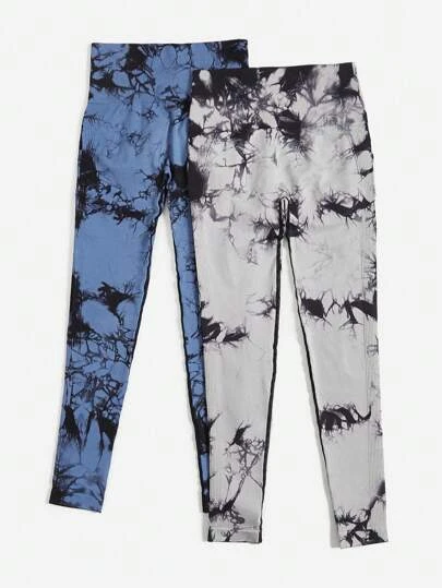 2pcs Tie Dye Wideband Waist Sports Leggings
