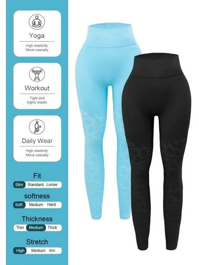 2pcs Wide Waistband Sports Leggings