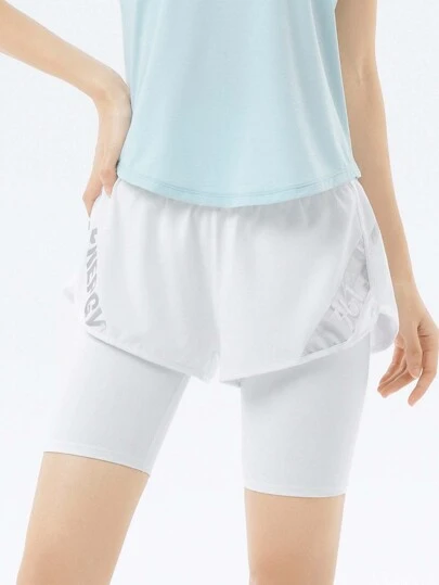 361 Women’s Summer & Autumn Sports, Yoga, Fitness, Cycling Pants, Wearing Thin Fake Two-piece Outside