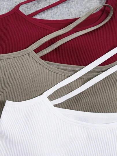 3pcs Ribbed Knit Asymmetrical Neck Sports Bra