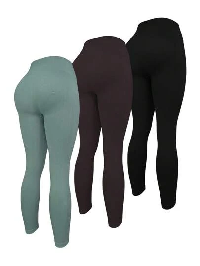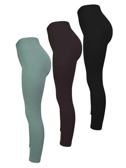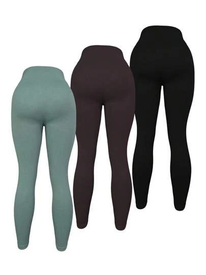 3pcs Solid Wideband Waist Sports Leggings