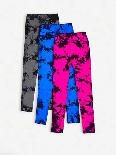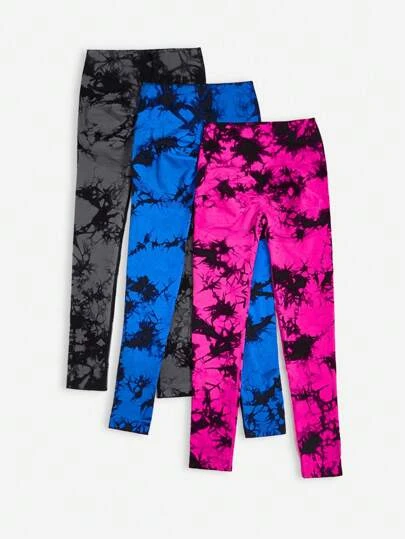 3pcs Tie Dye Wideband Waist Sports Leggings