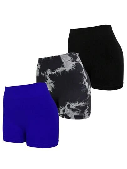 3pcs Tie Dye Wideband Waist Sports Shorts