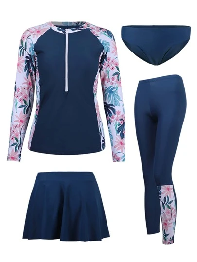 4pack Tropical Print Ruffle Hem Half Zip Sports Set
