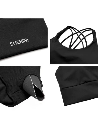 Black Wide Hem Double-layered Beautiful Back Sports Bra