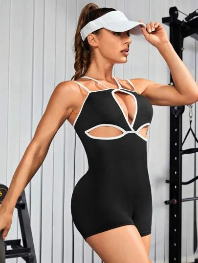 Contrast Binding Cut Out Front Cami Unitard Romper