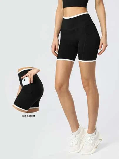 Contrast Binding Sports Shorts With Phone Pocket
