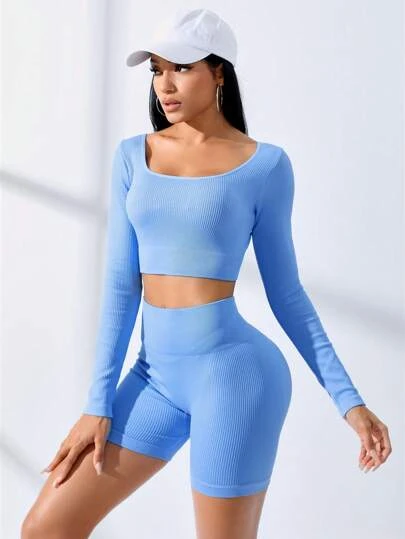 Be the first to review “Crisscross Backless Crop Sports Tee & Biker Shorts” Cancel reply