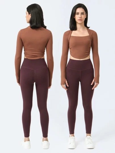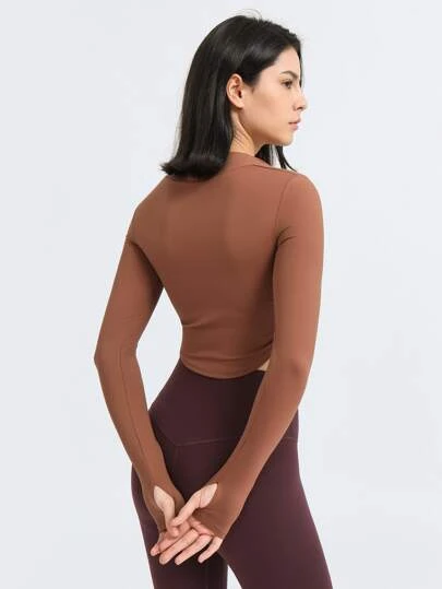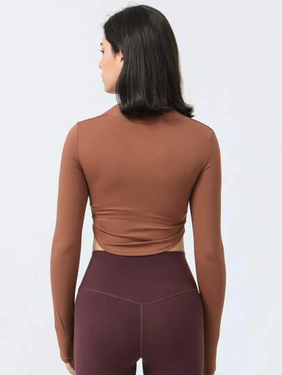 Fake Two-piece Folds Running Fitness Yoga Sports Long Sleeve T-shirt