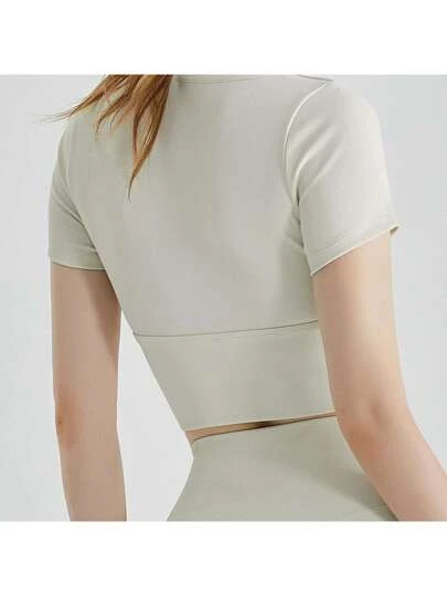 Fitness Women’s Short Sleeves T-shirt With Built-in Bra Pad, Tight Waist Design, Ventilate Running Yoga Clothes
