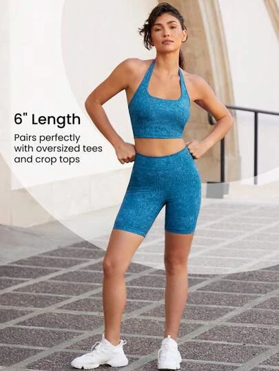 GLOWMODE 6″ DenimFlexy Anti Roll-Down Stretchy Pocket Biker Shorts Cycling Running Gym Workout