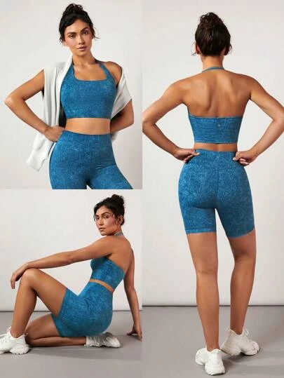 GLOWMODE DenimFlexy Hottie Halter Stretchy Sports Bra