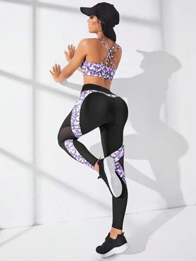 Graphic Print Crisscross Back Sports Set