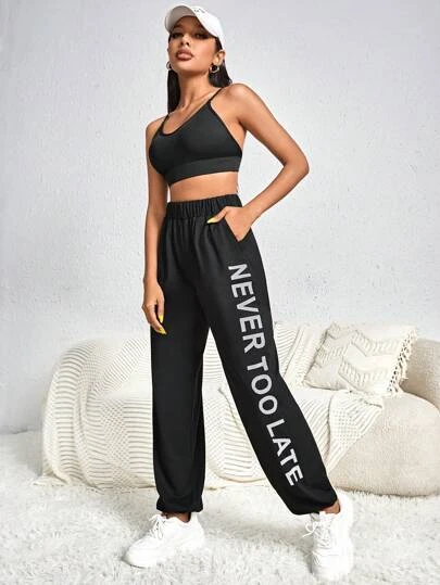 Be the first to review “Letter Graphic Elastic Waist Sports Pants” Cancel reply