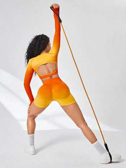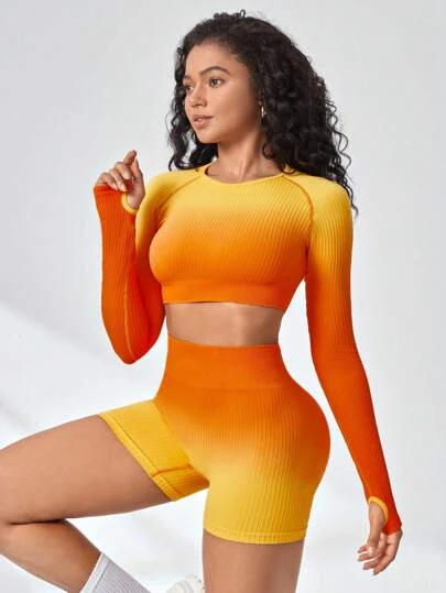 Ombre Thumb Holes Sports Tee & Biker Shorts