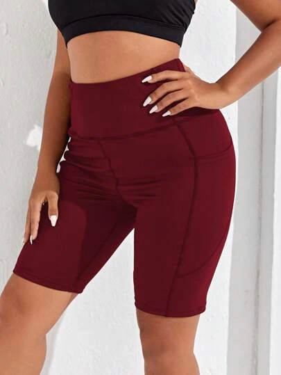 Plus High Stretch Wide Band Waist Sports Shorts With Phone Pocket