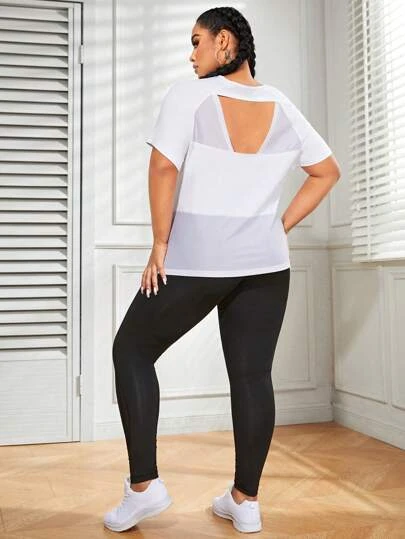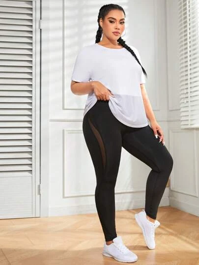 Plus Solid Sports Tee & Mesh Insert Sports Leggings Sports Set