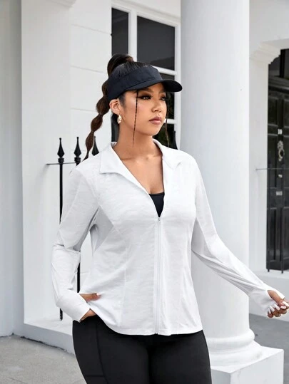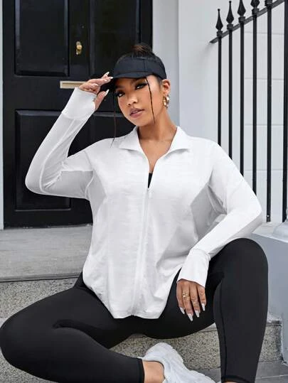 Plus Thumbholes Zip Up Mesh Insert Hooded Sports Jacket