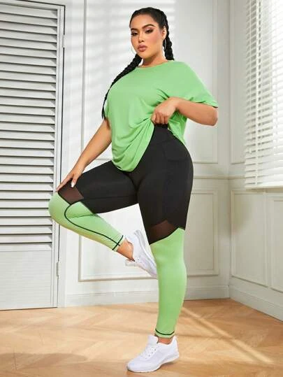 Plus Two Tone Mesh Insert Batwing Sleeve Sports Set