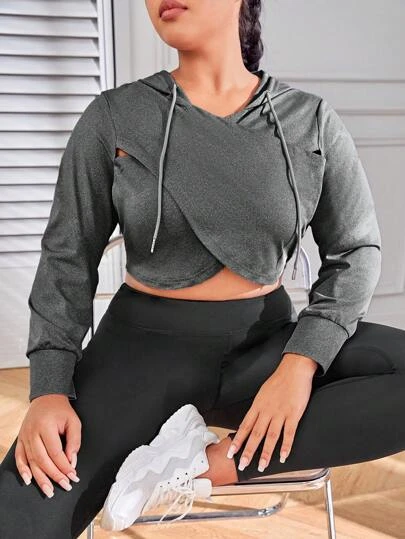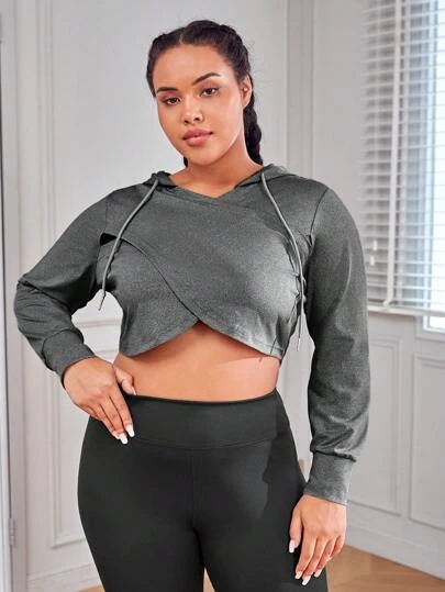 Plus Wrap Drawstring Crop Hoodie