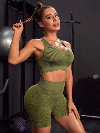 Seamless Racer Back Sports Bra With Biker Shorts