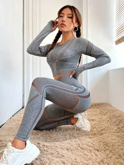 Seamless Striped Print Sports Set