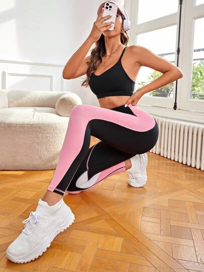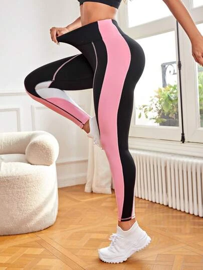 SHEIN Colorblock Wideband Waist Top-stitching Sports Leggings