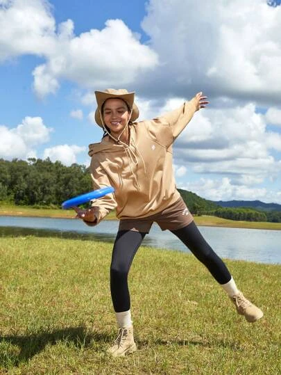 SHEIN In My Nature American Vintage Style Sweatshirt With Curved Line Design
