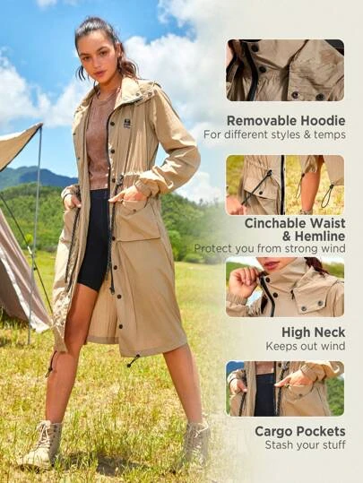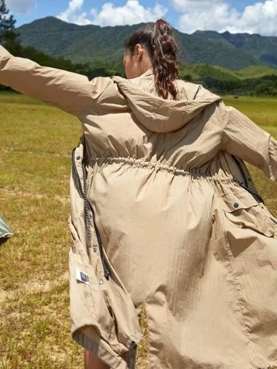 SHEIN In My Nature City Outdoor Water Resistant Hooded Long Work Jacket