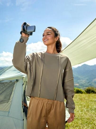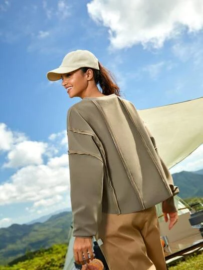 SHEIN In My Nature Women’s Heavyweight Oversize Hiking, Workout, Commuting Hoodie With Contrast Stitching