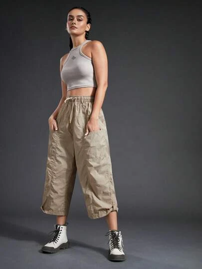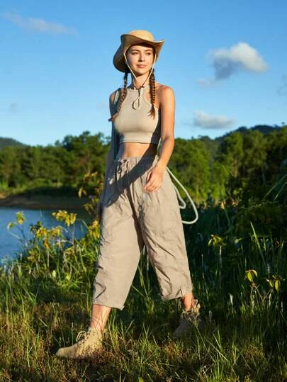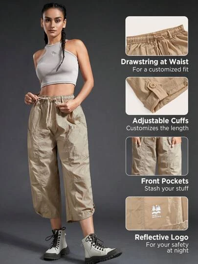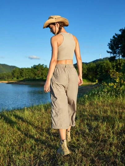 SHEIN In My Nature Women’s Outdoor Wrinkle-fabric 3/4 Length Anti-splash Multi-pocket Pants