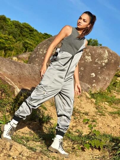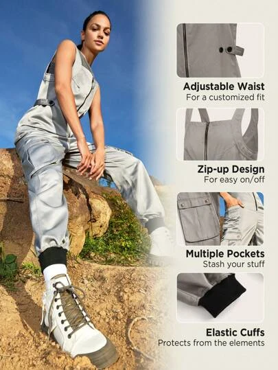 SHEIN In My Nature Women’s Outdoor Zipper Design Adjustable Waist And Elastic Cuff Loose Fit Trendy Jumpsuit