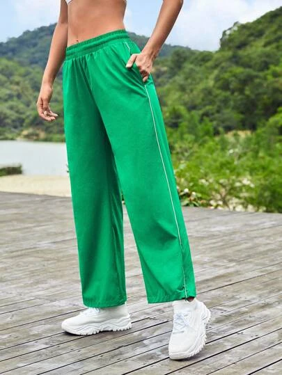 SHEIN Leisure Contrast Piping Slant Pocket Sports Pants