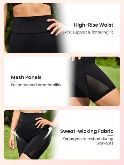 SHEIN Leisure Mesh Insert Wideband Waist Biker Shorts