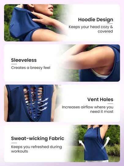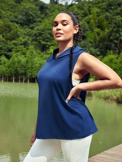 SHEIN Leisure Plus Cut Out Back Hooded Sports Tank Top