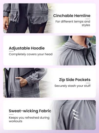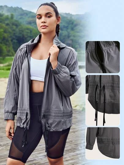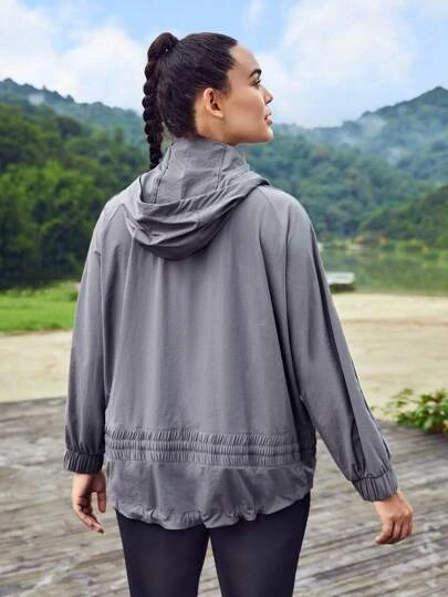 SHEIN Leisure Plus Drawstring Hooded Sports Jacket