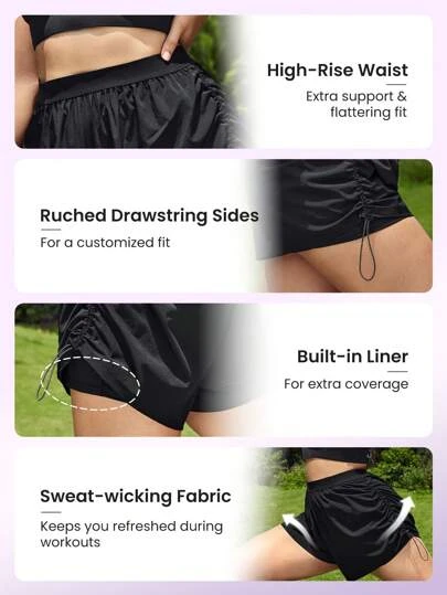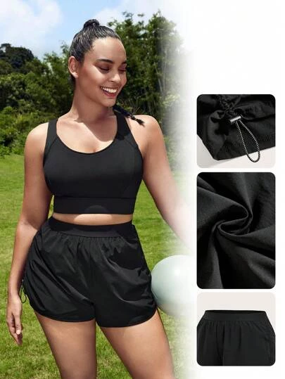 SHEIN Leisure Plus Ruched Drawstring Side Sports Shorts