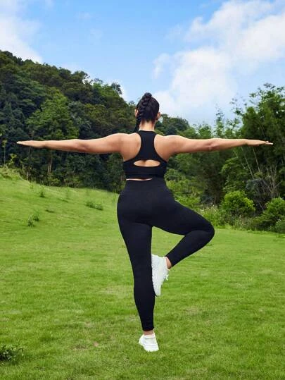 SHEIN Leisure Plus Solid Ruched Sports Set