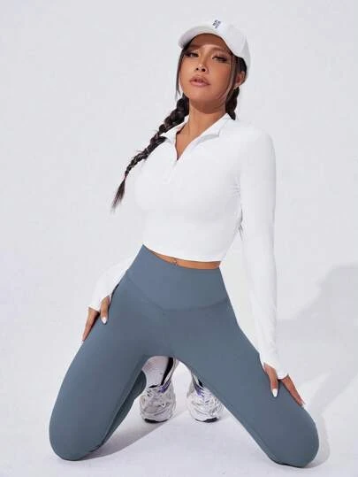 SHEIN Leisure Solid Wide Waistband Sports Leggings