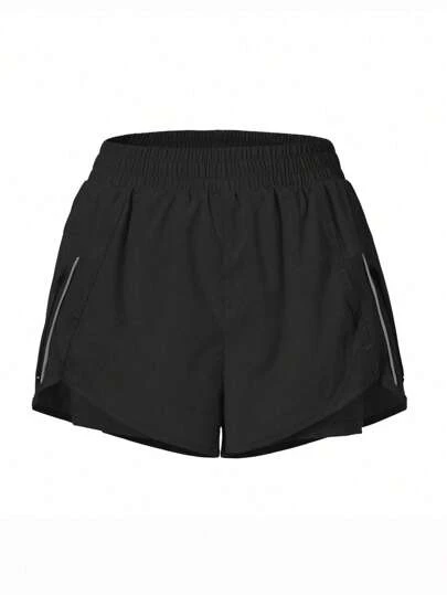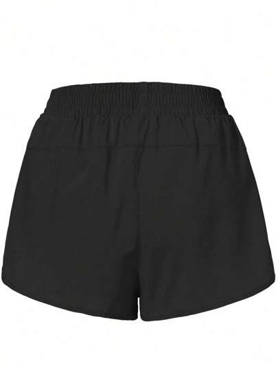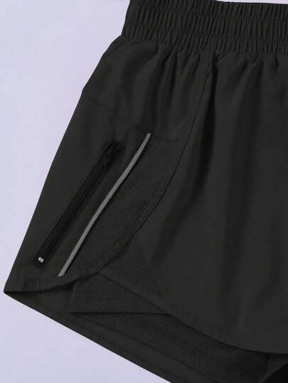 SHEIN Running Solid Zip Pocket Sports Shorts