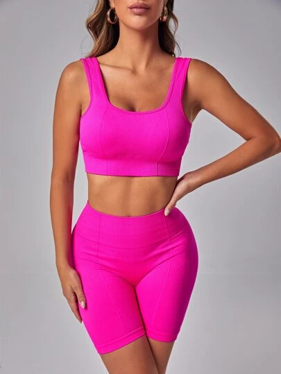 SHEIN Yoga Basic Solid Sports Bra & Biker Shorts
