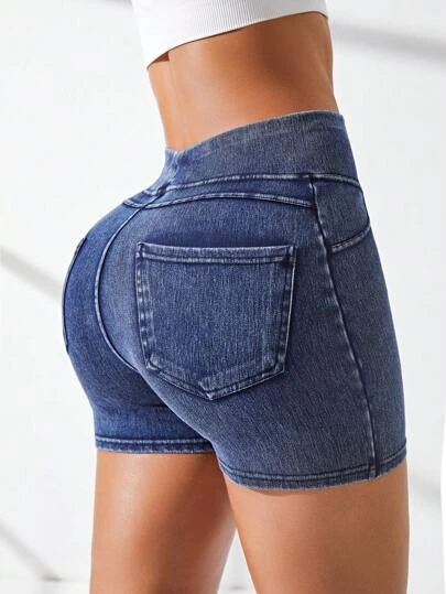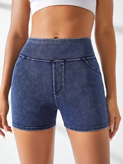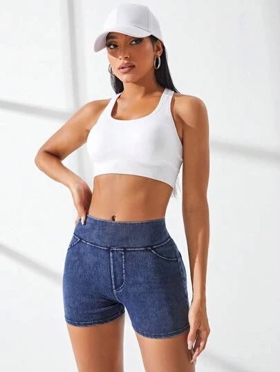 Solid Skinny Denim Sports Shorts