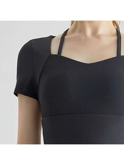 Sportswear Gym Top For Women, With Built-in Bra Pad Short Sleeve Tight Waist Showing Navel Running & Yoga Outfits
