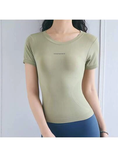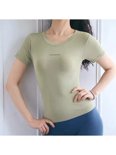 Summer Breathable Short Sleeve Yoga Top For Women, High Elasticity Running Quick-drying Fitness Tight T-shirt