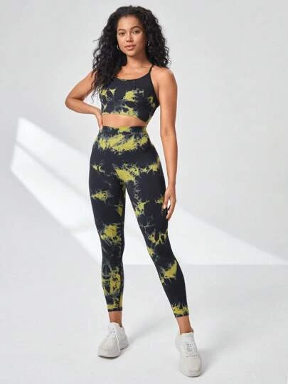 Tie Dye Crisscross Backless Sports Set