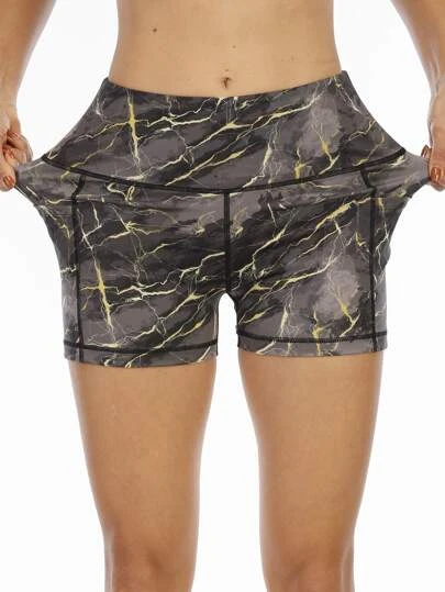 Tie-dye Wide Waistband Shorts With Pockets For Yoga