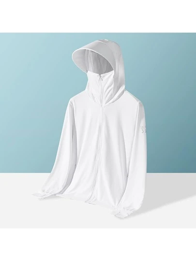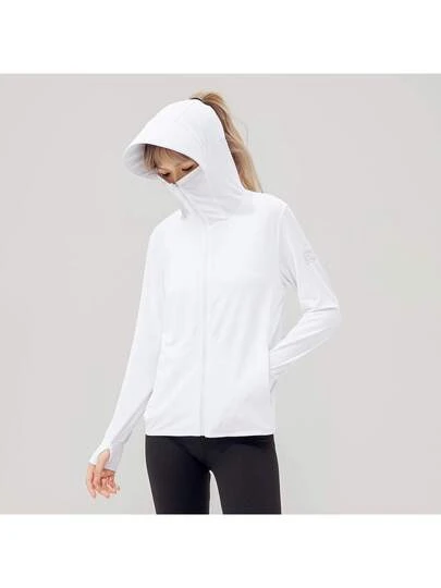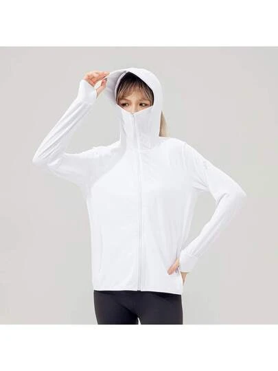 Women’s Full Coverage Uv Protection Jacket Long Sleeve Upf 50+ Sun Protection Shirt Quick Dry Sport Outdoor Hooded Jacket White
