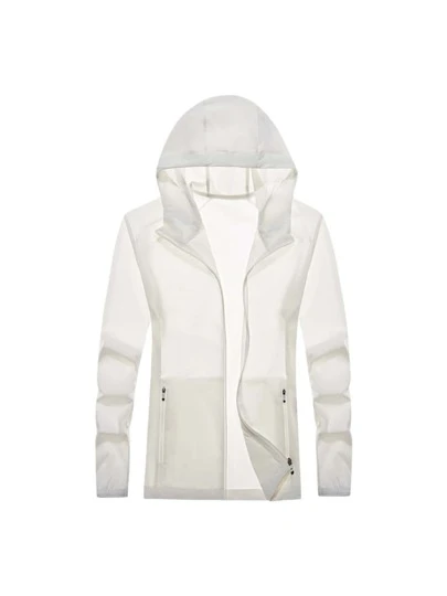 Women’s Full-zip Upf 50+ Sun Protection Jacket With Hood & Pockets, Outdoor Cool Shirt For Hiking, White
