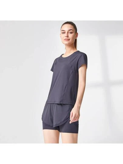 Women’s Yoga Top Short-sleeved Summer Outfit, Quick-drying T-shirt With Mesh Patchwork Design, Can Be Worn Outside And Inner Wear, Slim Fit