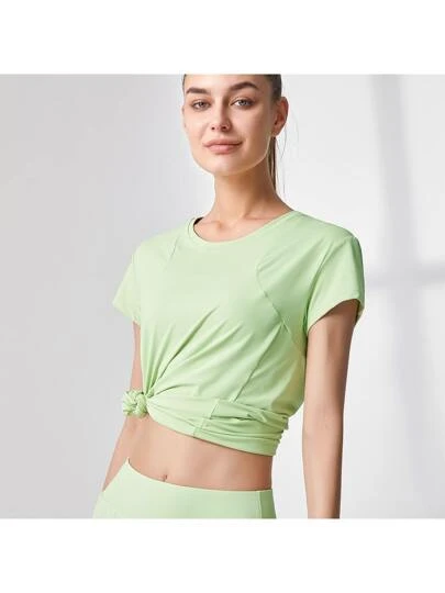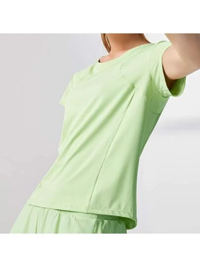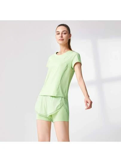 Women’s Yoga Top, Summer Short Sleeve Quick Dry T-shirt With Slimming Sheer Mesh Panel Design That Can Be Worn Outside